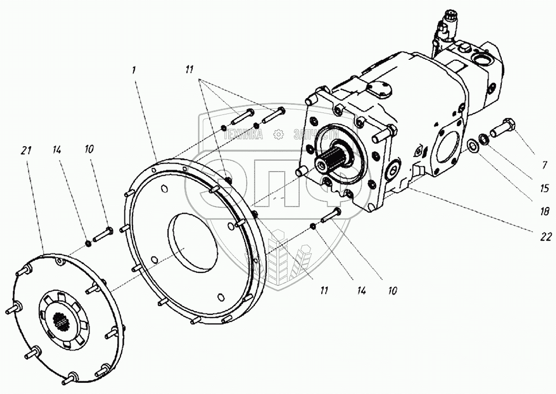 Каталог запасных частей к технике: ТВЭКС ТХ-210. 202121001000 00 Установка агрегата насосного