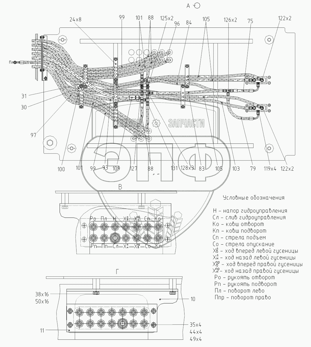 Каталог запасных частей к технике: ТВЭКС ТХ-210. 212030500000 00 Гидроуправление экскаватора