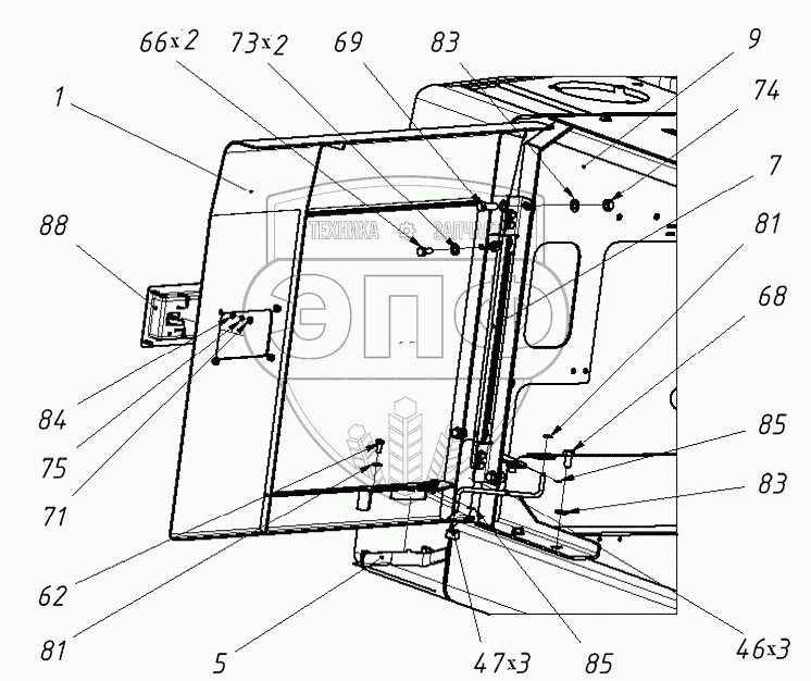 Каталог запасных частей к технике: ТВЭКС ТХ-270 / 300. 272060100000 02 Установка капота