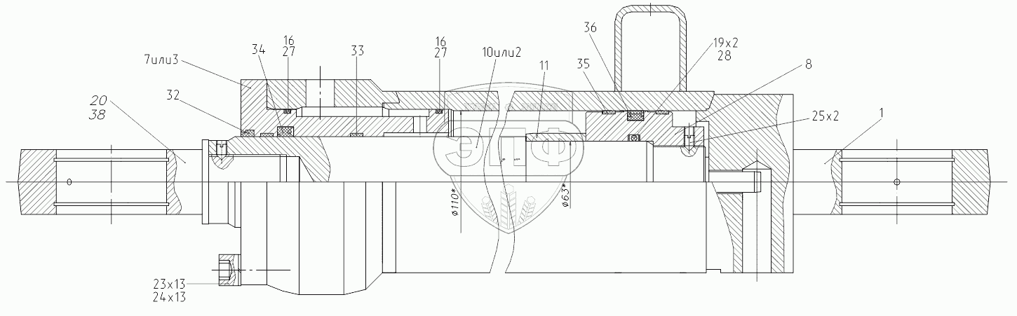 Каталог запасных частей к технике: ТВЭКС TVEX-140W. 110700901000 16 Гидроцилиндр (110х70х900)