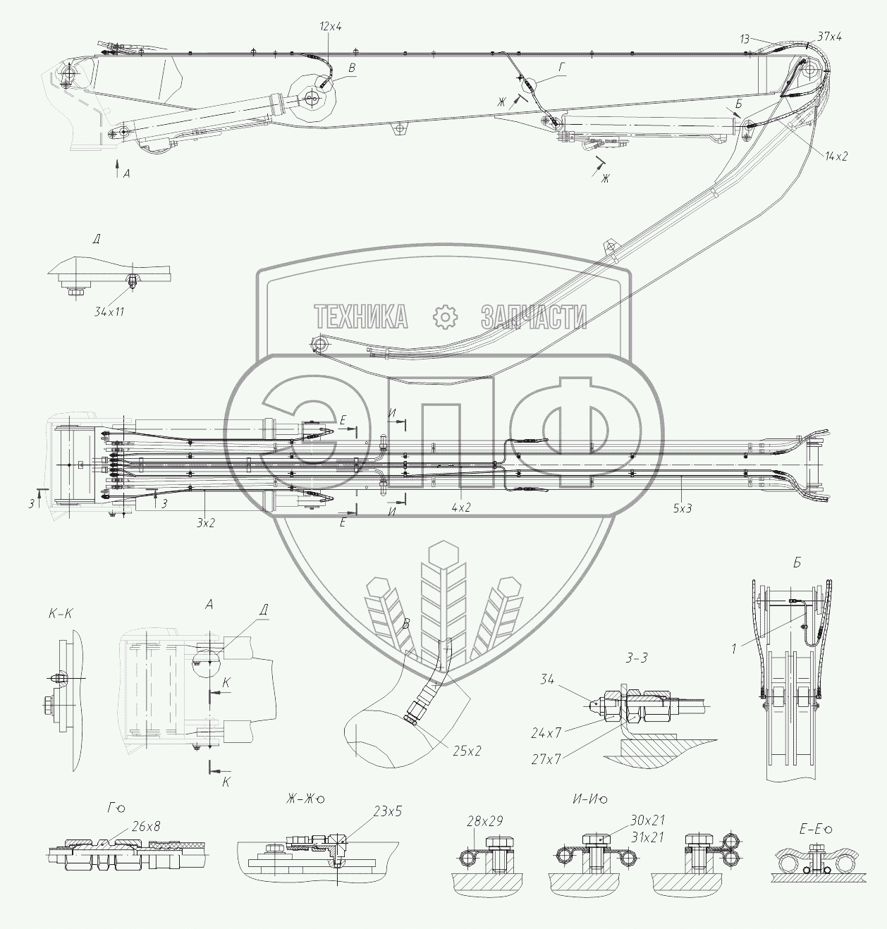 Каталог запасных частей к технике: ТВЭКС TVEX-180i. 318502419100 00 Трубопроводы централизованной смазки