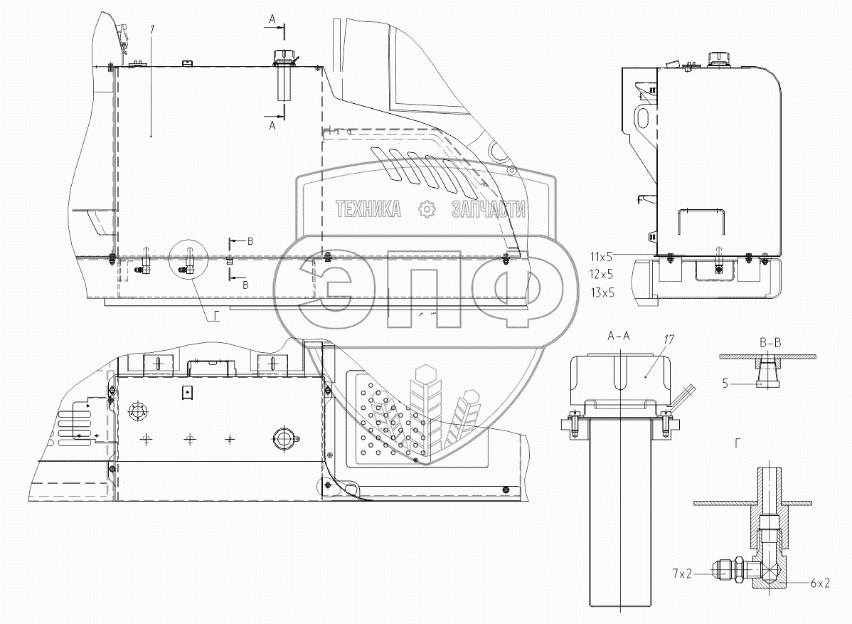 Каталог запасных частей к технике: ТВЭКС TVEX-180W. 314920650000 00 Установка бака топливного