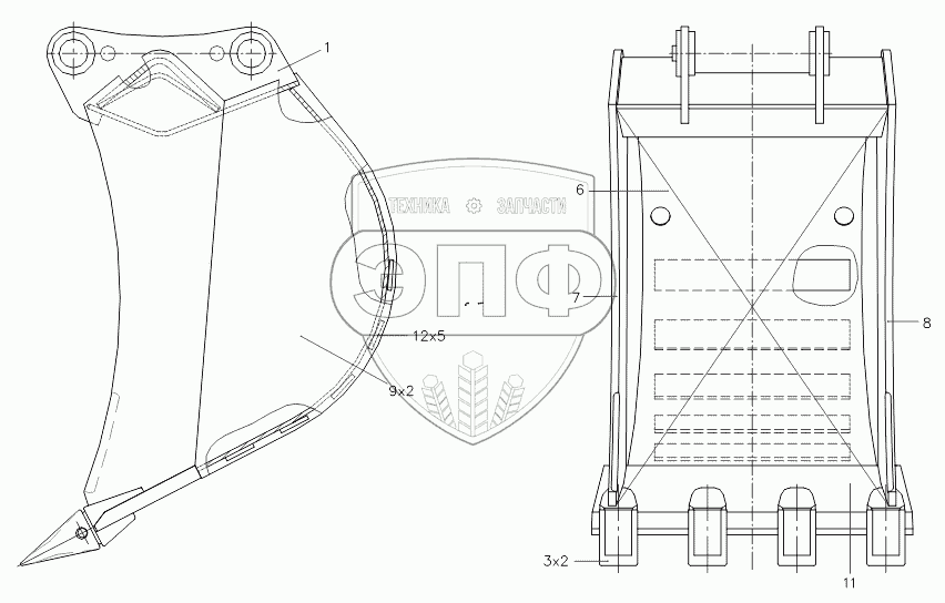 Каталог запасных частей к технике: ТВЭКС TVEX-180W. 320002107500 10 Ковш обратной лопаты