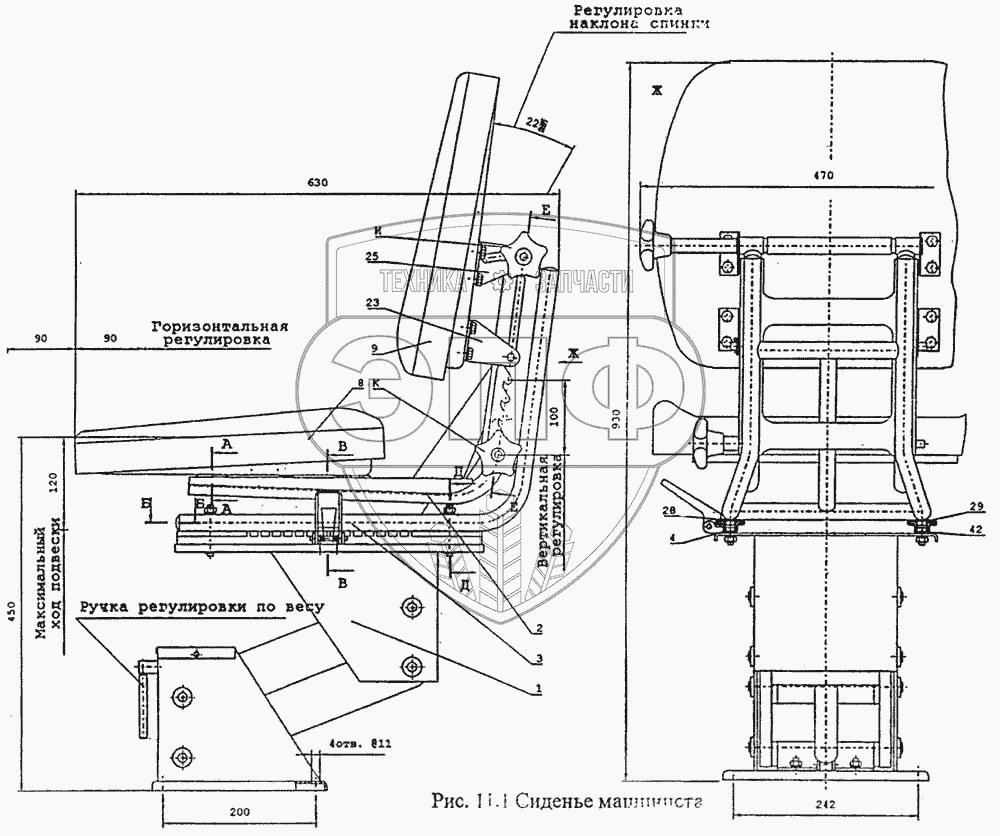 Каталог запасных частей к технике: ТВЭКС ВП-05. Сиденье машиниста