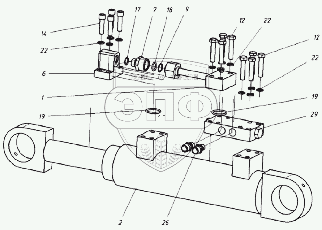 Каталог запасных частей к технике: ТВЭКС WХ-200. 001410105300 00 Цилиндр отвала