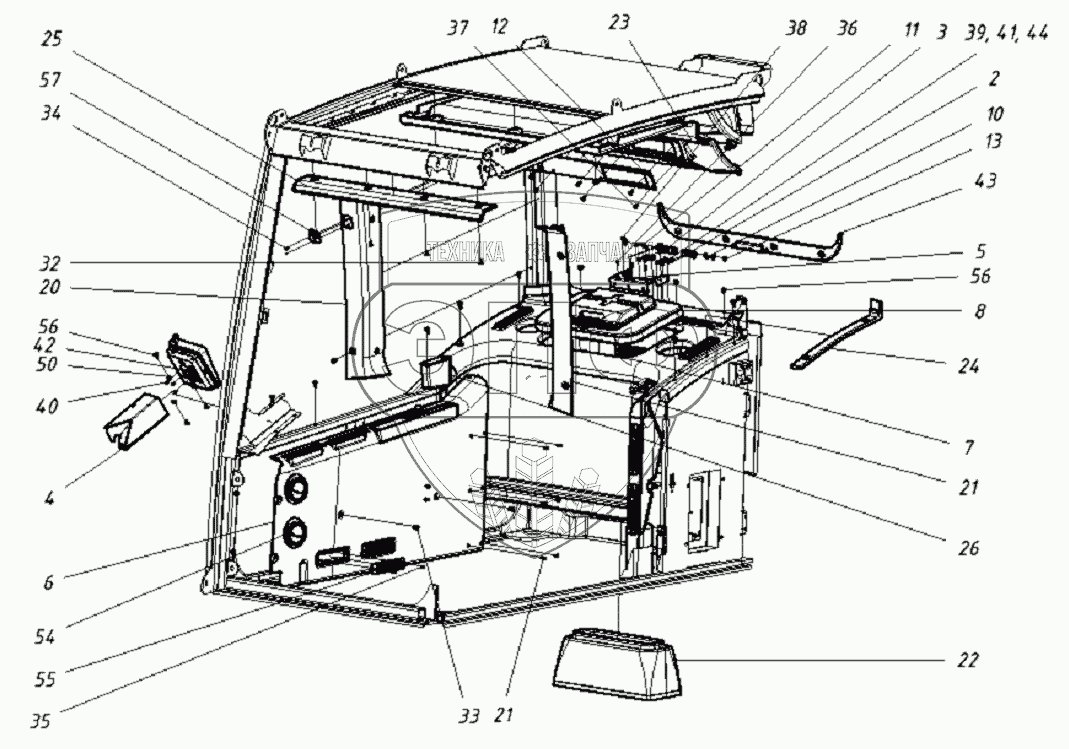 Каталог запасных частей к технике: ТВЭКС WХ-200. 202020200000 00 Установка интерьера кабины