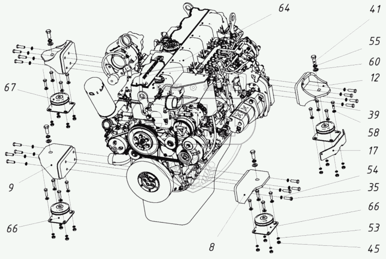Каталог запасных частей к технике: ТВЭКС WХ-200. Двигатель с опорами