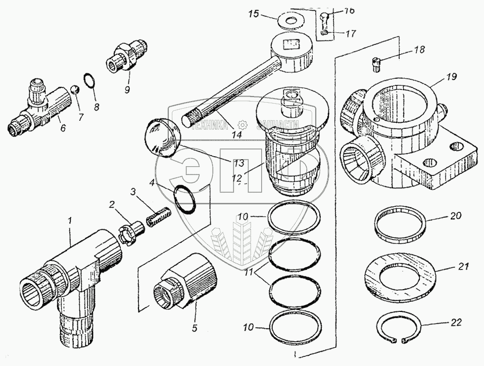 Каталог запасных частей к технике: Угличмаш КС-3577. Клапан аварийный КС-3577.84.400