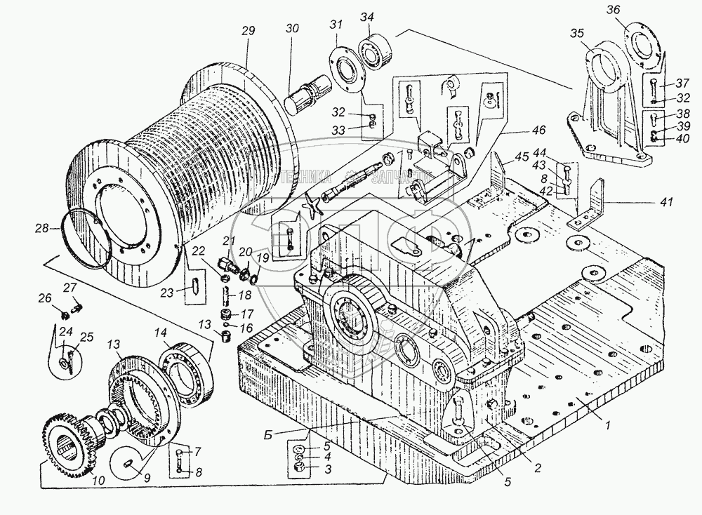 Каталог запасных частей к технике: Угличмаш КС-3577. Лебедка КС-3577.26.000-3