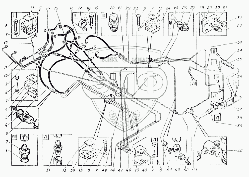 Каталог запасных частей к технике: УВЗ ЭО-5126. Трубопроводы управления на платформе