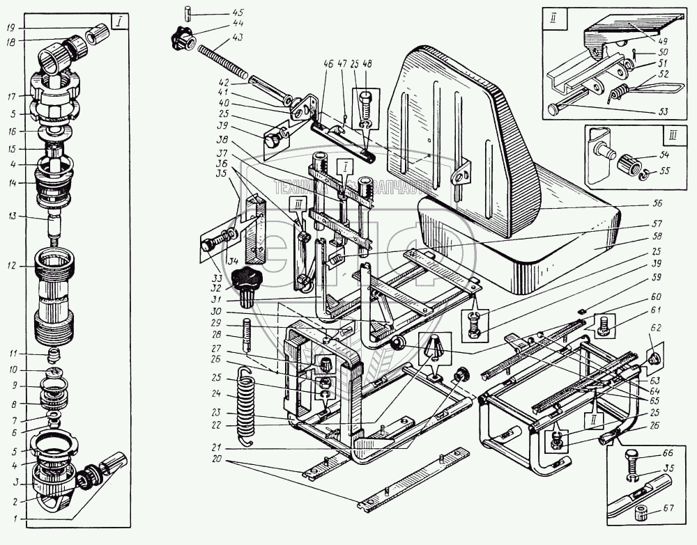 Каталог запасных частей к технике: ВЭКС ЭО-5122. Сиденье машиниста