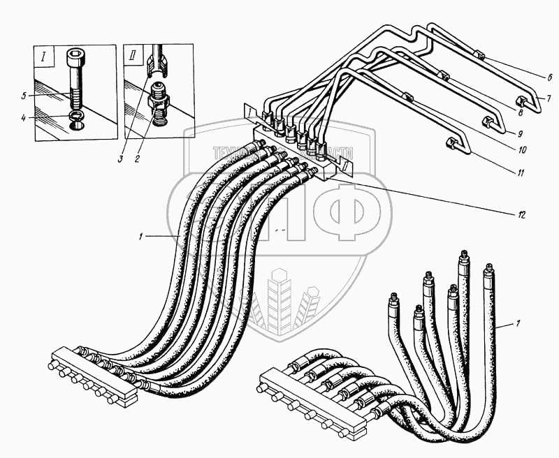 Каталог запасных частей к технике: ВЭКС ЭО-5122. Трубопроводы управления стрелы