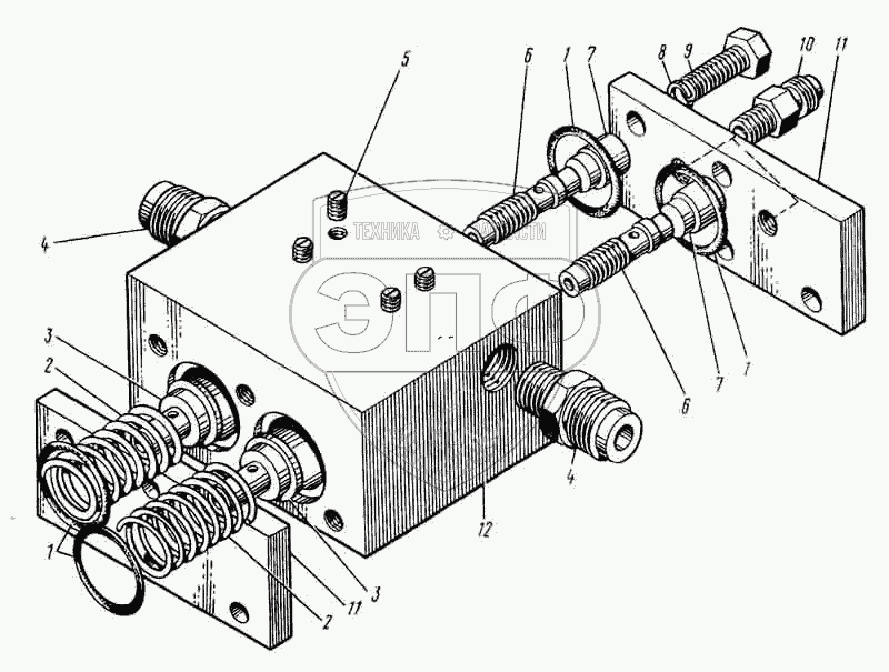 Каталог запасных частей к технике: ВЭКС ЭО-5124. Блок золотников
