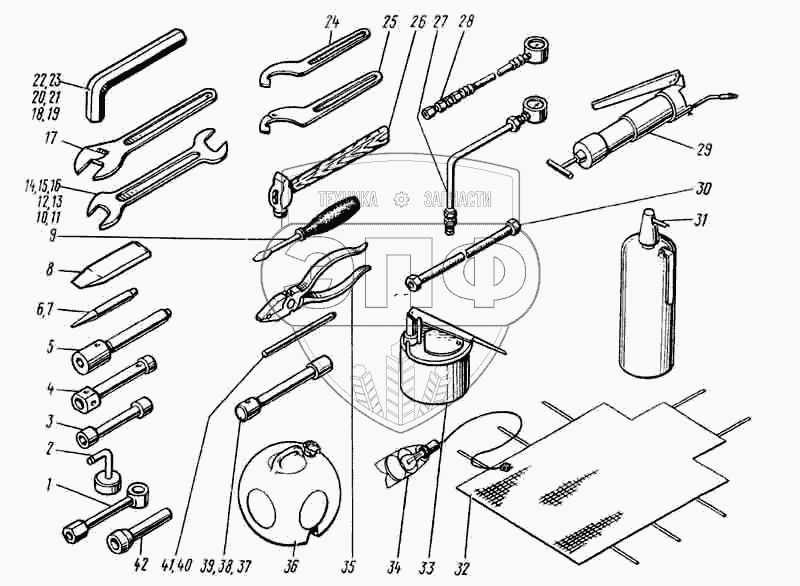 Каталог запасных частей к технике: ВЭКС ЭО-5124. Комплект инструментов и принадлежностей