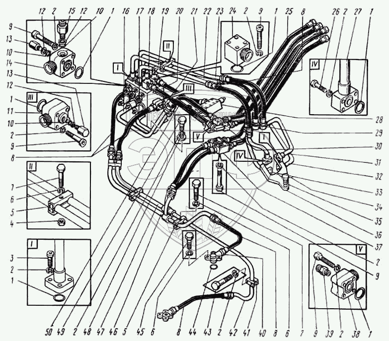 Каталог запасных частей к технике: ВЭКС ЭО-5124. Трубопроводы на платформе