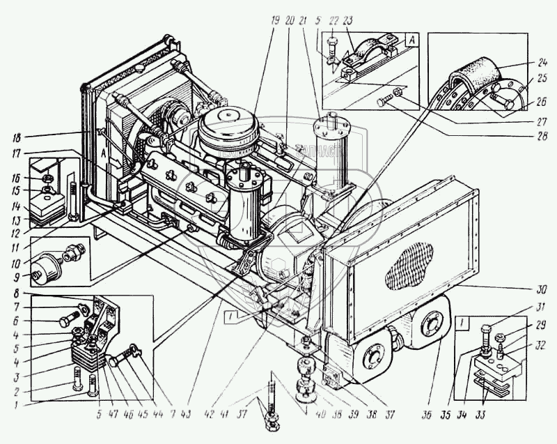 Каталог запасных частей к технике: ВЭКС ЭО-5124. Установка дизеля и насосов