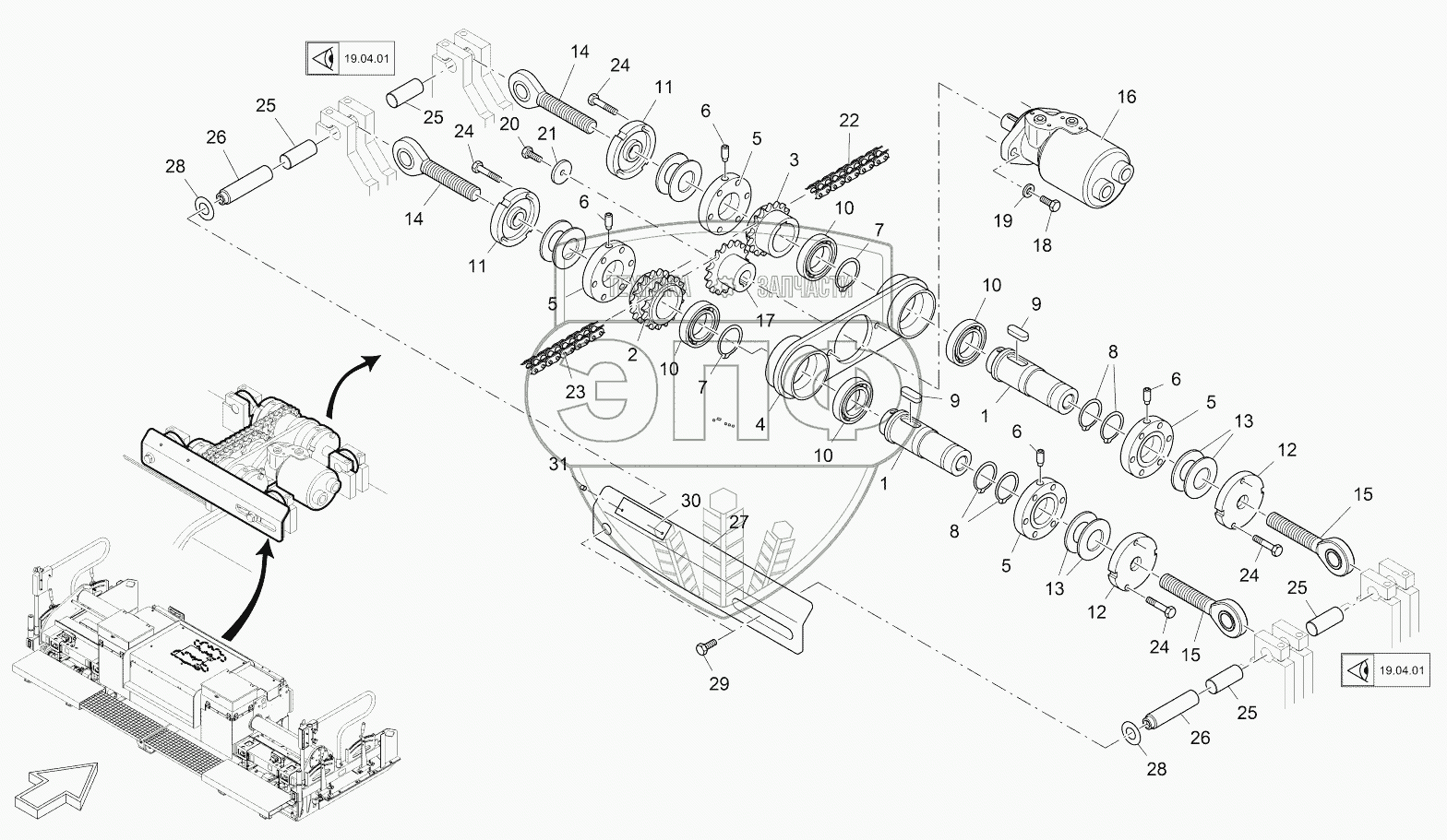 Каталог запасных частей к технике: VOGELE AB 340. CROWN ADJUSTMENT WITH DRIVE