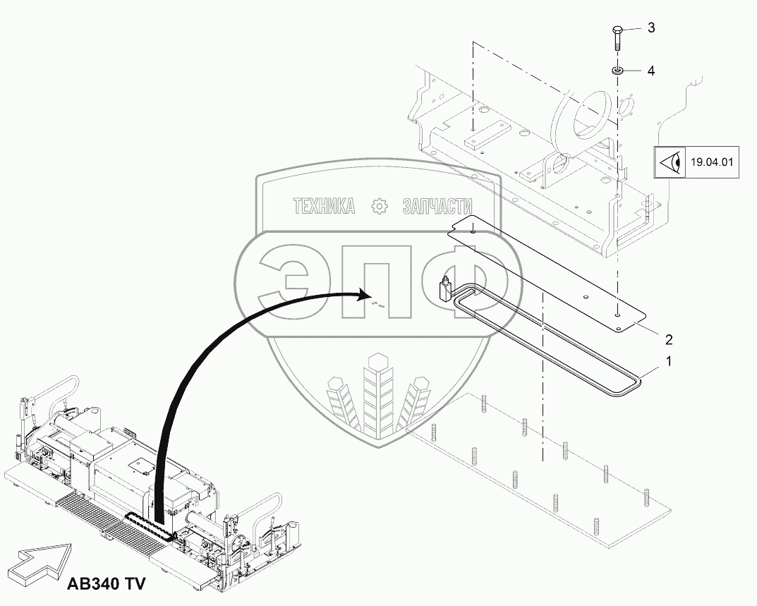 Каталог запасных частей к технике: VOGELE AB 340. HEATING: SCREED PLATE, RIGHT