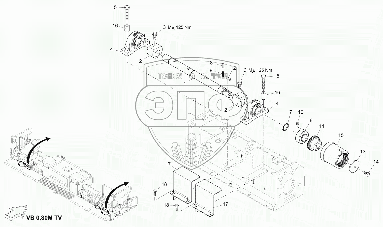 Каталог запасных частей к технике: VOGELE AB 340. VIBRATORS VB 0,80M
