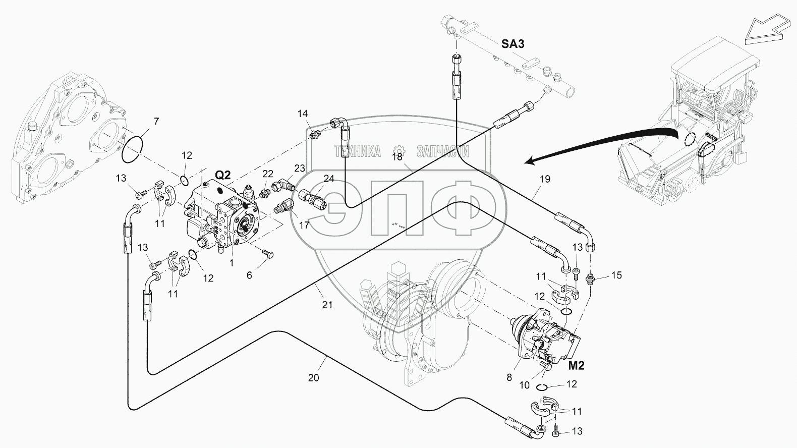Каталог запасных частей к технике: VOGELE SUPER 1303-2. TRACTION DRIVE, HYDR, RIGHT