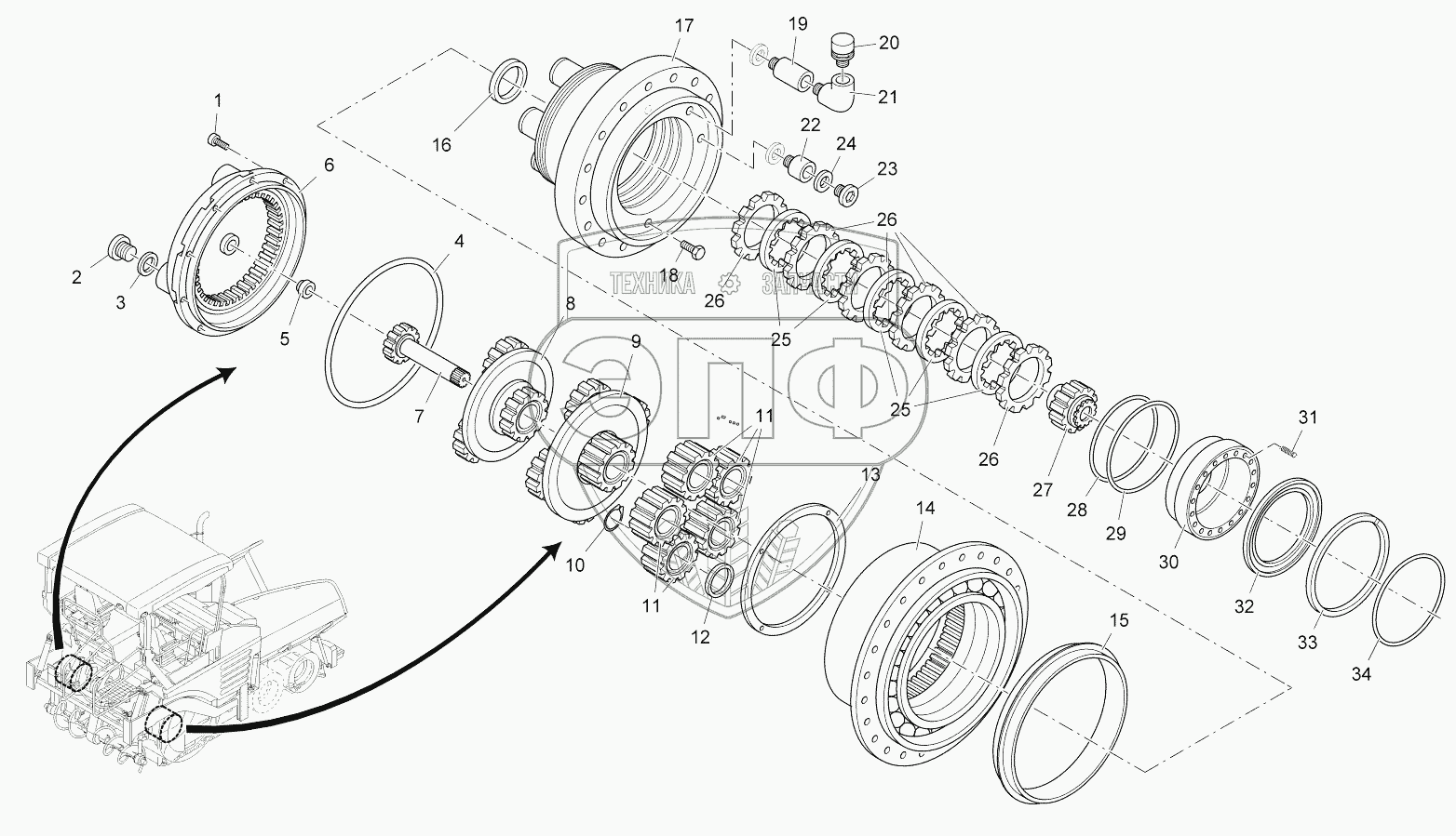 Каталог запасных частей к технике: VOGELE SUPER 1600-2. CHASSIS TRANSMISSION