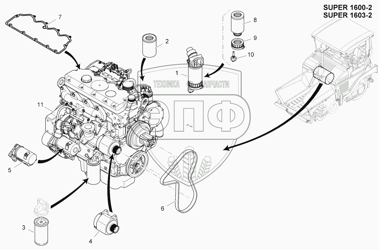 Каталог запасных частей к технике: VOGELE SUPER 1600-2. DIESEL ENGINE COM3 / EPA