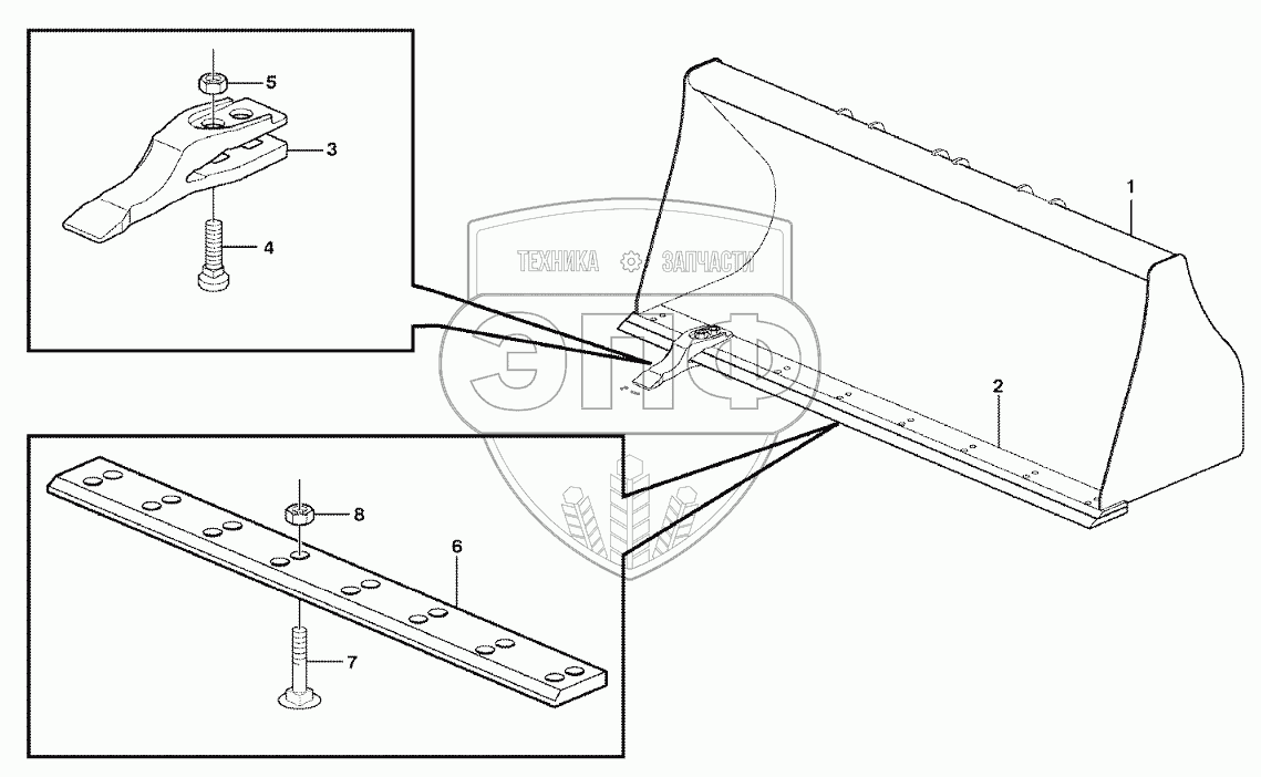 Каталог запасных частей к технике: Volvo BL60. Bucket, straight with teeth (LOADER)