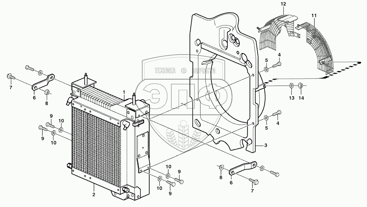 Каталог запасных частей к технике: Volvo BL60. Radiator with fitting parts