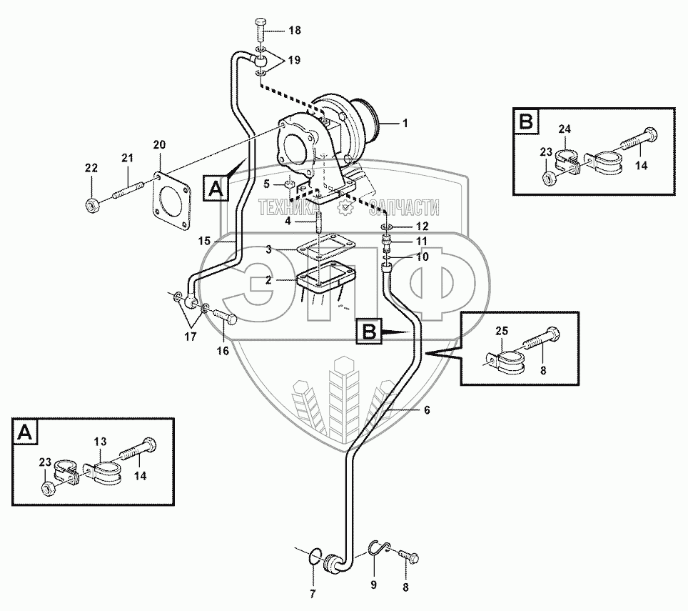 Каталог запасных частей к технике: Volvo BL60. Turbocharger with fitting parts