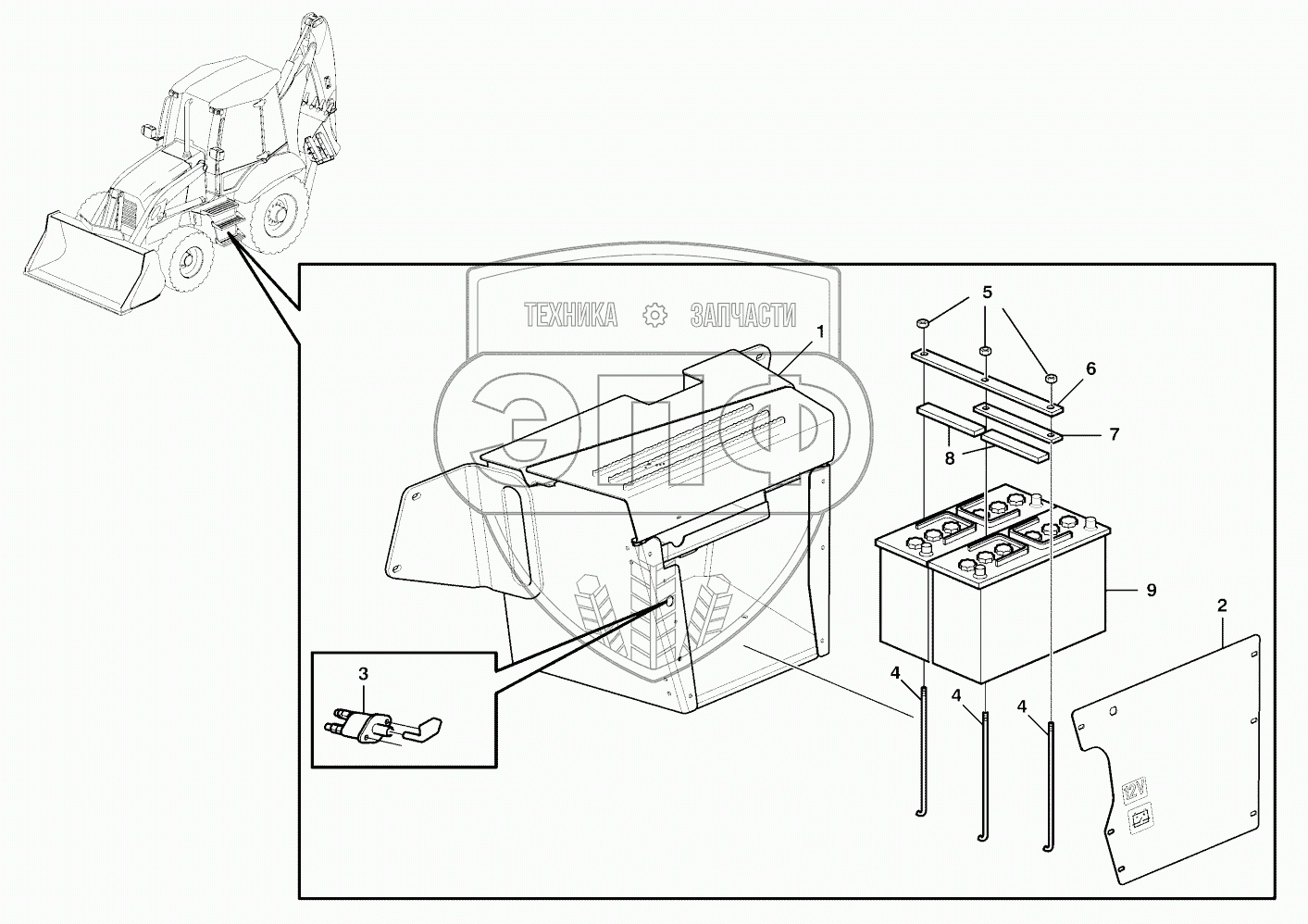 Каталог запасных частей к технике: Volvo BL61. Battery box with fitting parts