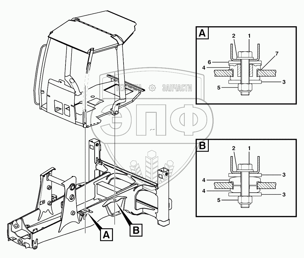 Каталог запасных частей к технике: Volvo BL61. Cab mounting block