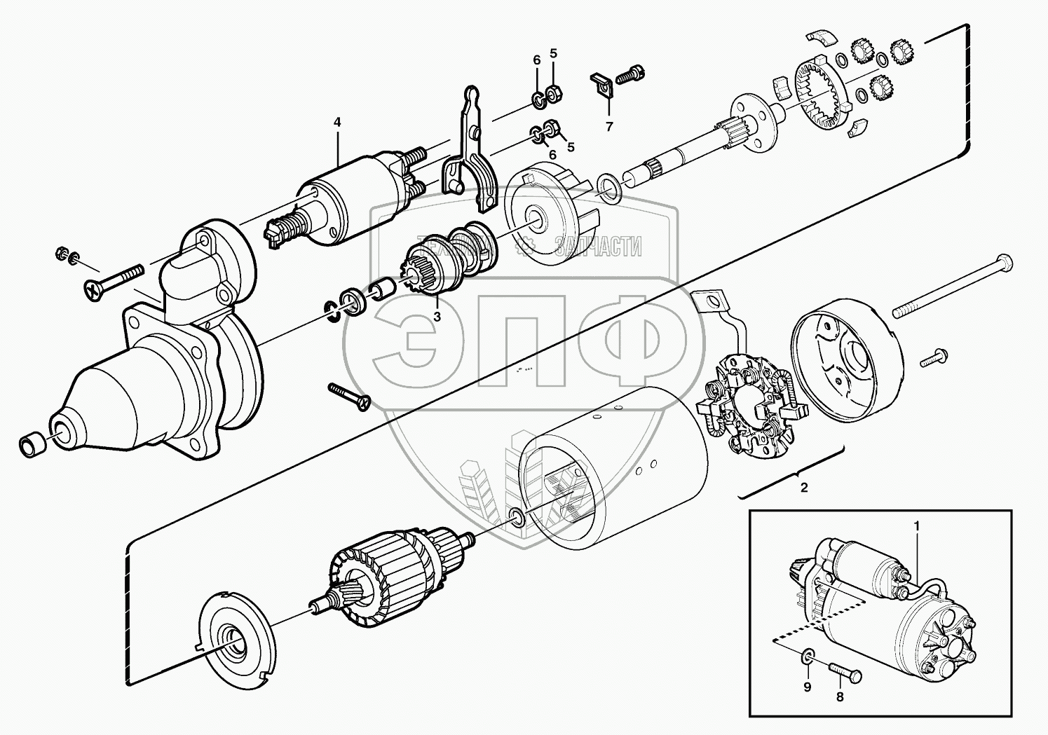Каталог запасных частей к технике: Volvo BL61. Starter motor with assembling details