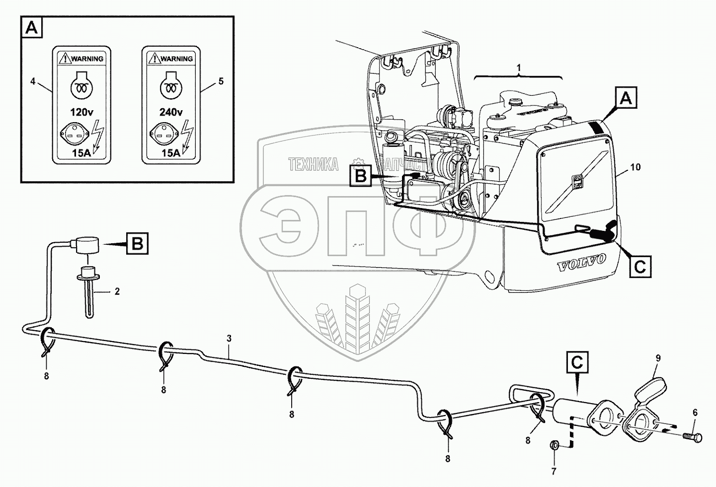 Каталог запасных частей к технике: Volvo BL61 Plus. Engine heater 11891429, 11891430