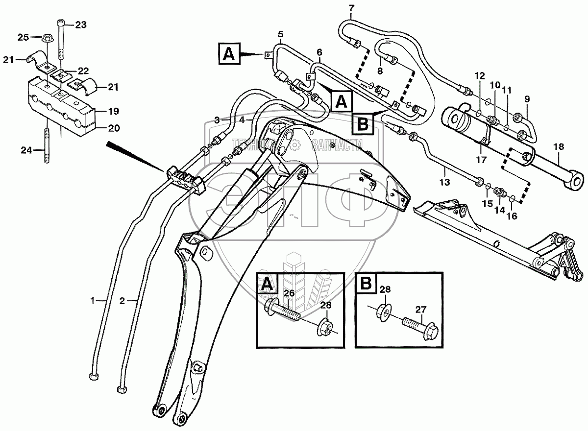 Каталог запасных частей к технике: Volvo BL70. 11891022 Hydraulic system, bucket