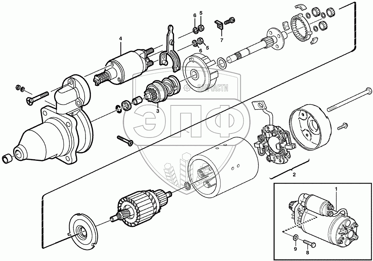 Каталог запасных частей к технике: Volvo BL71. Starter motor with assembling details