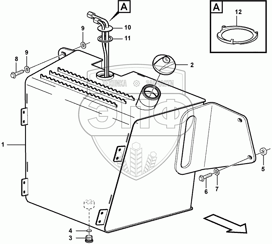 Каталог запасных частей к технике: Volvo BL71 Plus. Fuel tank with fitting parts