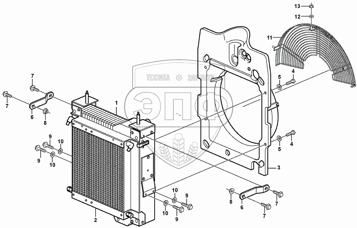 Каталог запасных частей к технике: Volvo BL71 Plus. Radiator with fitting parts