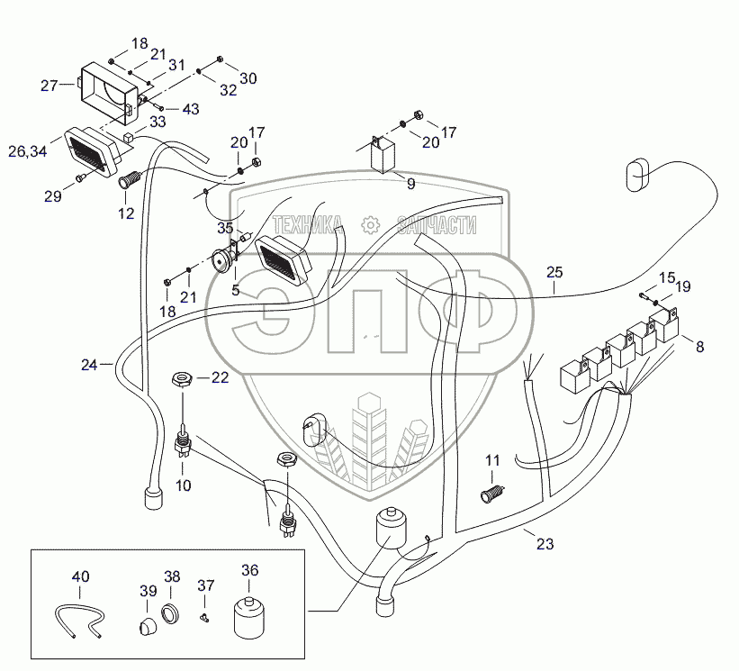 Каталог запасных частей к технике: WAY LOCUST L-1203. Электрооборудование кабины