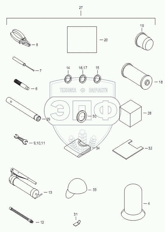 Каталог запасных частей к технике: WAY LOCUST L-752. Принадлежности