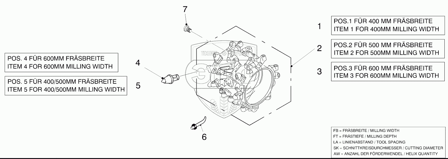 Каталог запасных частей к технике: WIRTGEN W600DC. DRUM FB400/500/600 HT1