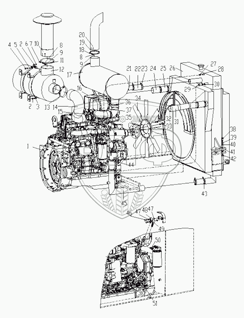 Каталог запасных частей к технике: XCMG Автогрейдер-GR135. 380300953 (G135C00) Engine And Attachment