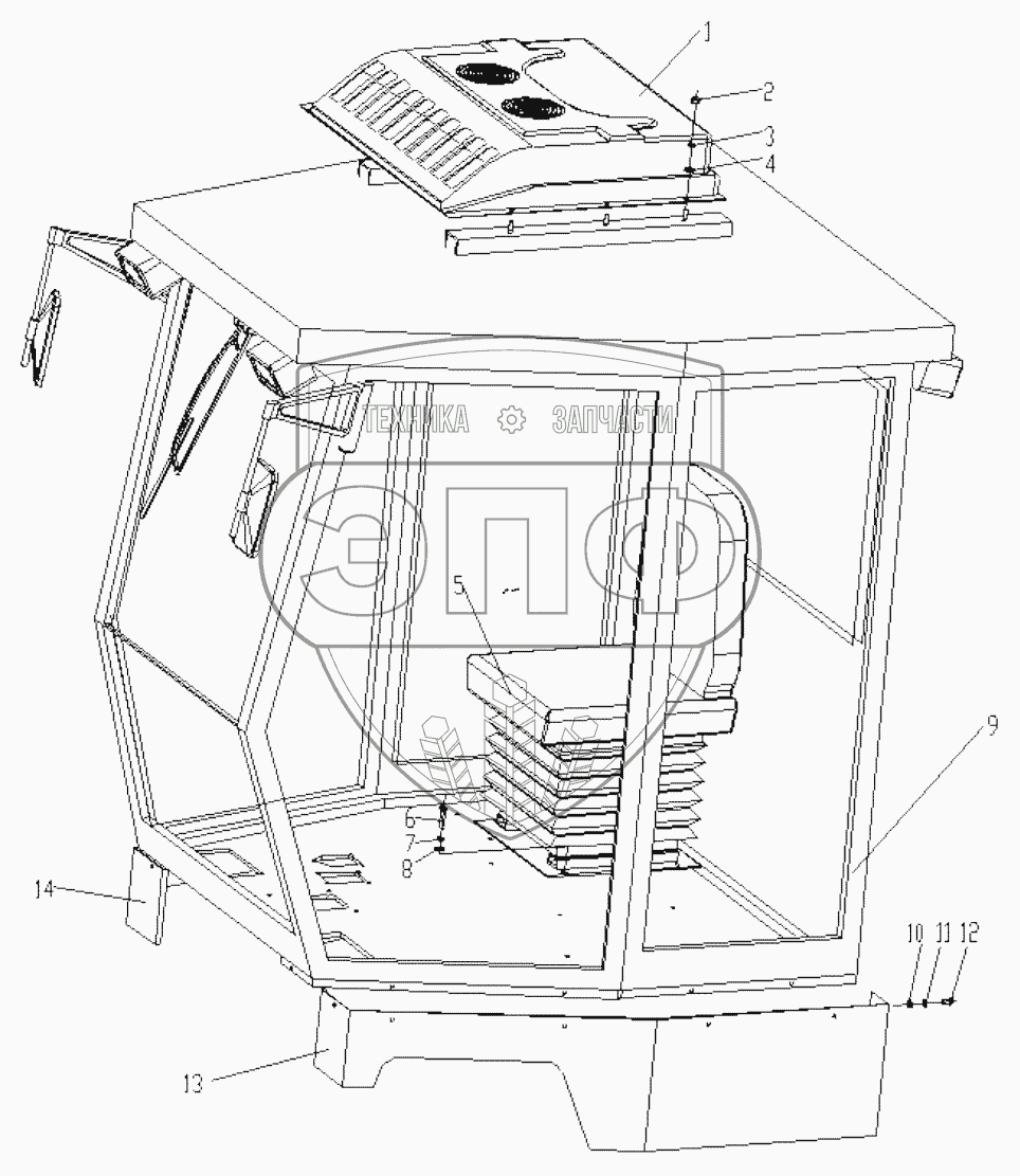 Каталог запасных частей к технике: XCMG Автогрейдер-GR135. 380300956 (G135003) Cab Assy