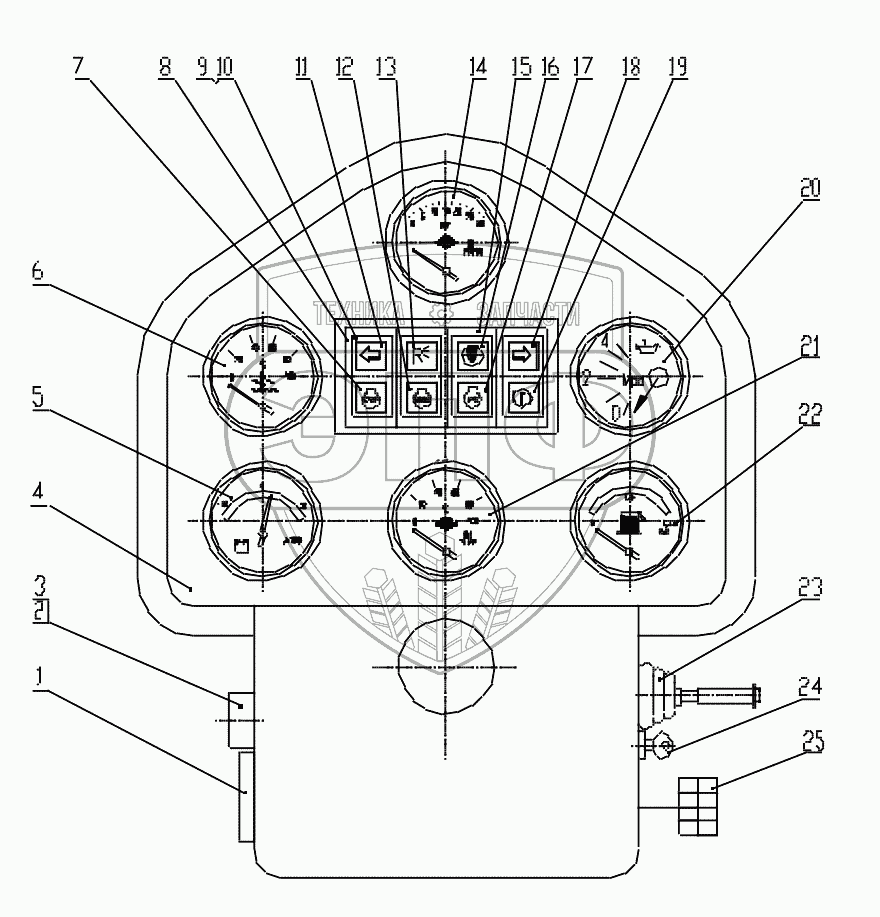 Каталог запасных частей к технике: XCMG Автогрейдер-GR135. 380301097 (G135C00) Instrumentation Console Assy