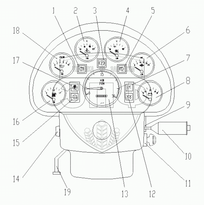 Каталог запасных частей к технике: XCMG Автогрейдер-GR135. 380301103 (G135003) Instrumentation Console Assy