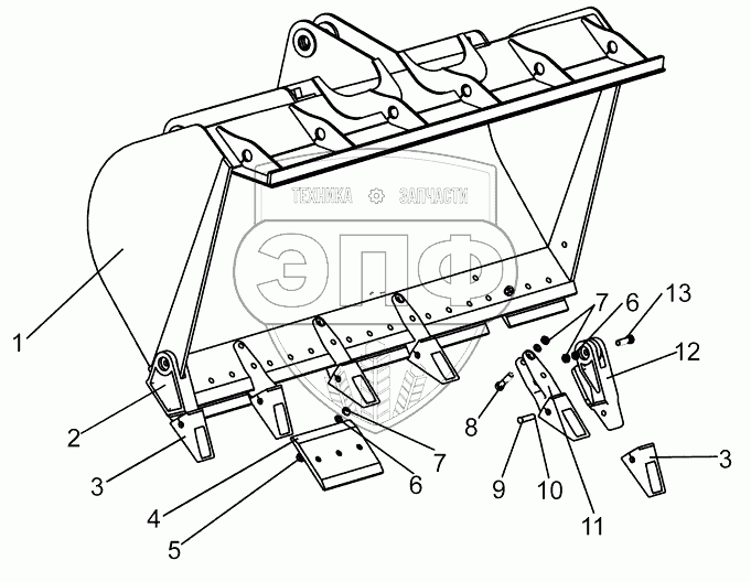 Каталог запасных частей к технике: XCMG LW300KN. Ковш-лопата 252604832 (Шесть шанутов)