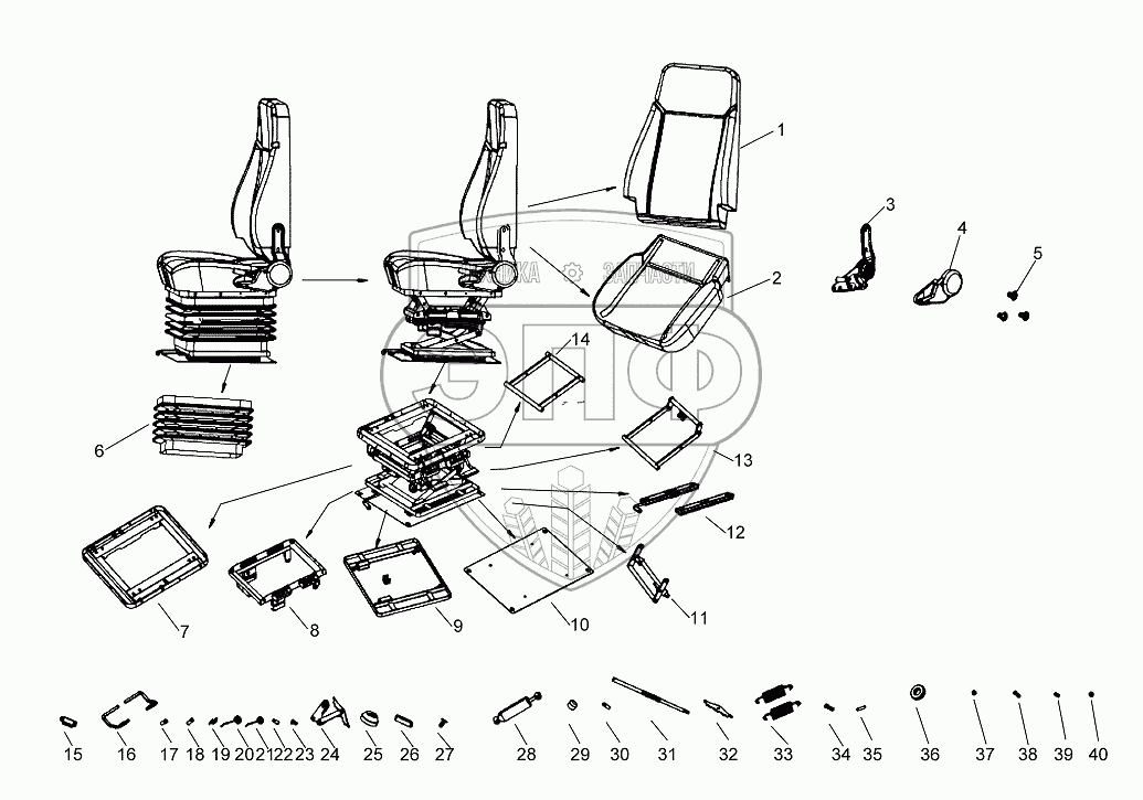 Каталог запасных частей к технике: XCMG LW300KN. Сиденье в сборе 801968890 XGZY03-AII
