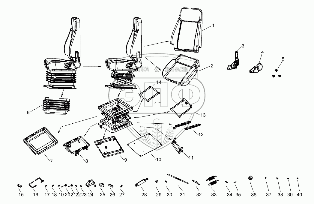 Каталог запасных частей к технике: XCMG LW300KN. Сиденье в сборе XGZY03-AII