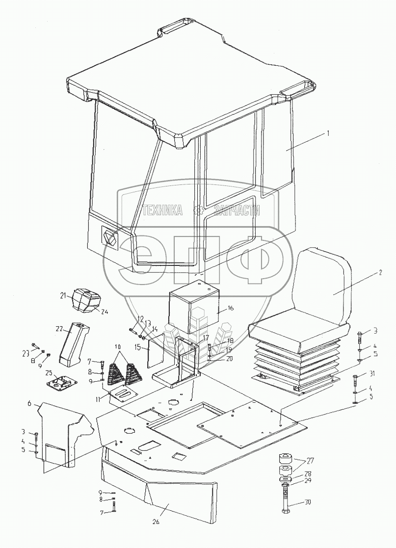 Каталог запасных частей к технике: XCMG LW-541F. LW560F Кабина