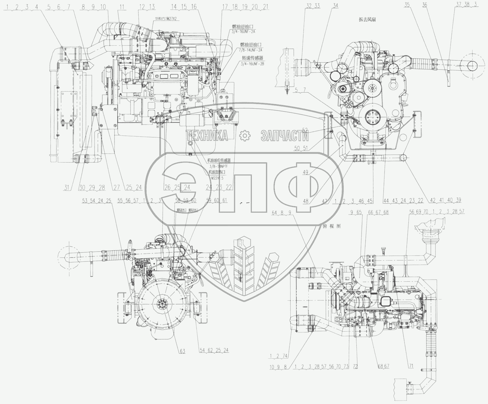 Каталог запасных частей к технике: XCMG QY50K (вариант). XZ50K.45 III Engine Install