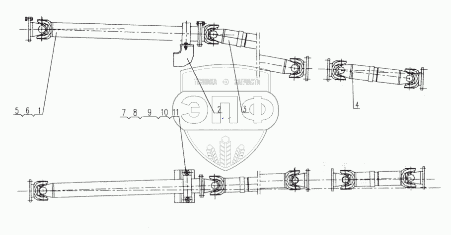 | 4 | XZ16K.53.4 | Transmission shaft for last axle | Нет на складе | |